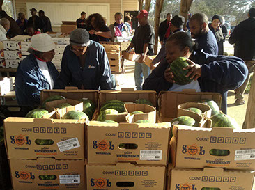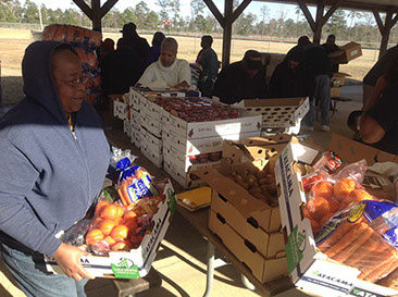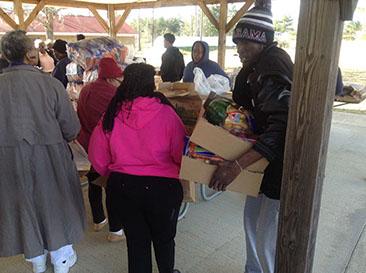 The Macon County Food Pantry held a food distribution at Warrior Stand Recreation Center. The Brothers Inspiring Excellence, from the Tuskegee University School of Veterinarian Medicine picked up almost 4,000 lbs. of food. Then they eagerly and energetically distributed it to the mostly elderly crowd along with Food Pantry Committee members and faithful volunteers. It was great weather and the Peace of Christ was upon the area. It was a great time!